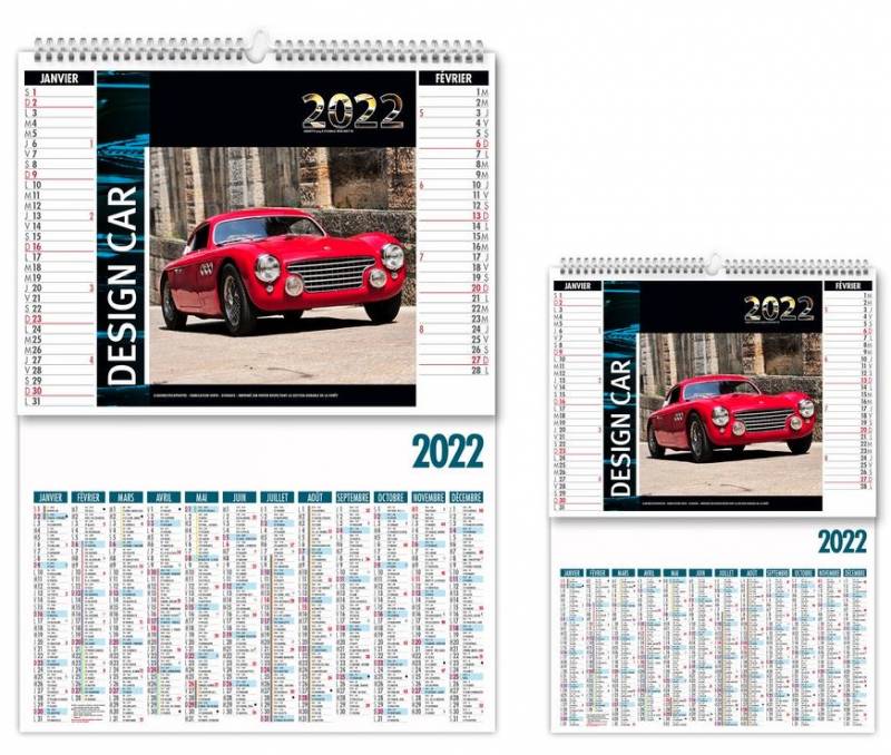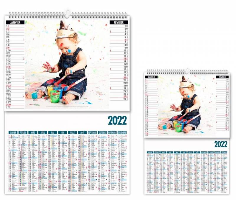 Un concept original pour ce calendrier 2 en 1 qui comprend à la fois un visuel avec 2 mois par page et un calendrier annuel 12 mois le tout sur la même page.