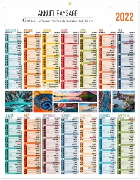 Nous possédons une collection standard qui comprend plus de 100 références et nous pouvons également faire une personnalisation complète de votre calendrier selon votre charte graphique.